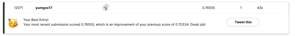 CSVが出力されたので kaggle に提出します。